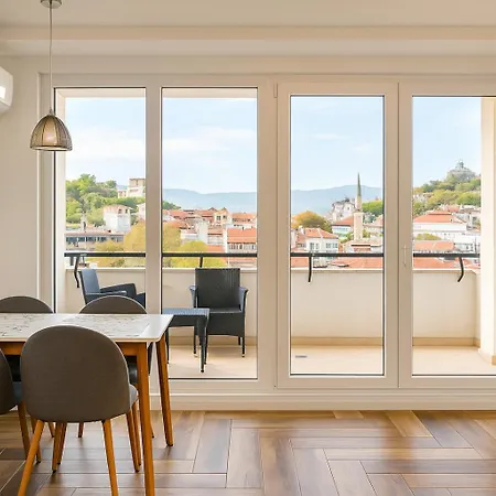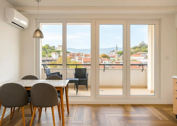 South Panoramic Apartment In The Art District Of Kapana van 60 m^2 bevindt zich in het centrum van Plovdiv, op minder dan 400 meter van het Amfitheater van Plovdiv. Het appartement ligt in de wijk Plovdiv - Centrum van Plovdiv en heeft een zonneterras met uitzicht op de berg.